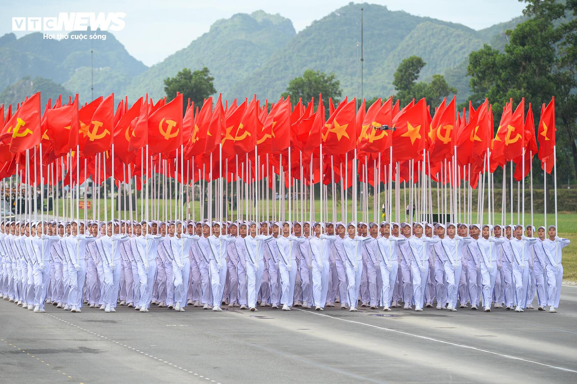 | Buổi kiểm tra tổng hợp luyện gồm hai phần: Thực hiện các nội dung nghi lễ, nghi thức của Đảng, Nhà nước và thực hiện diễu binh, diễu hành. (Trong ảnh là Khối cờ Đảng, cờ Tổ quốc) |