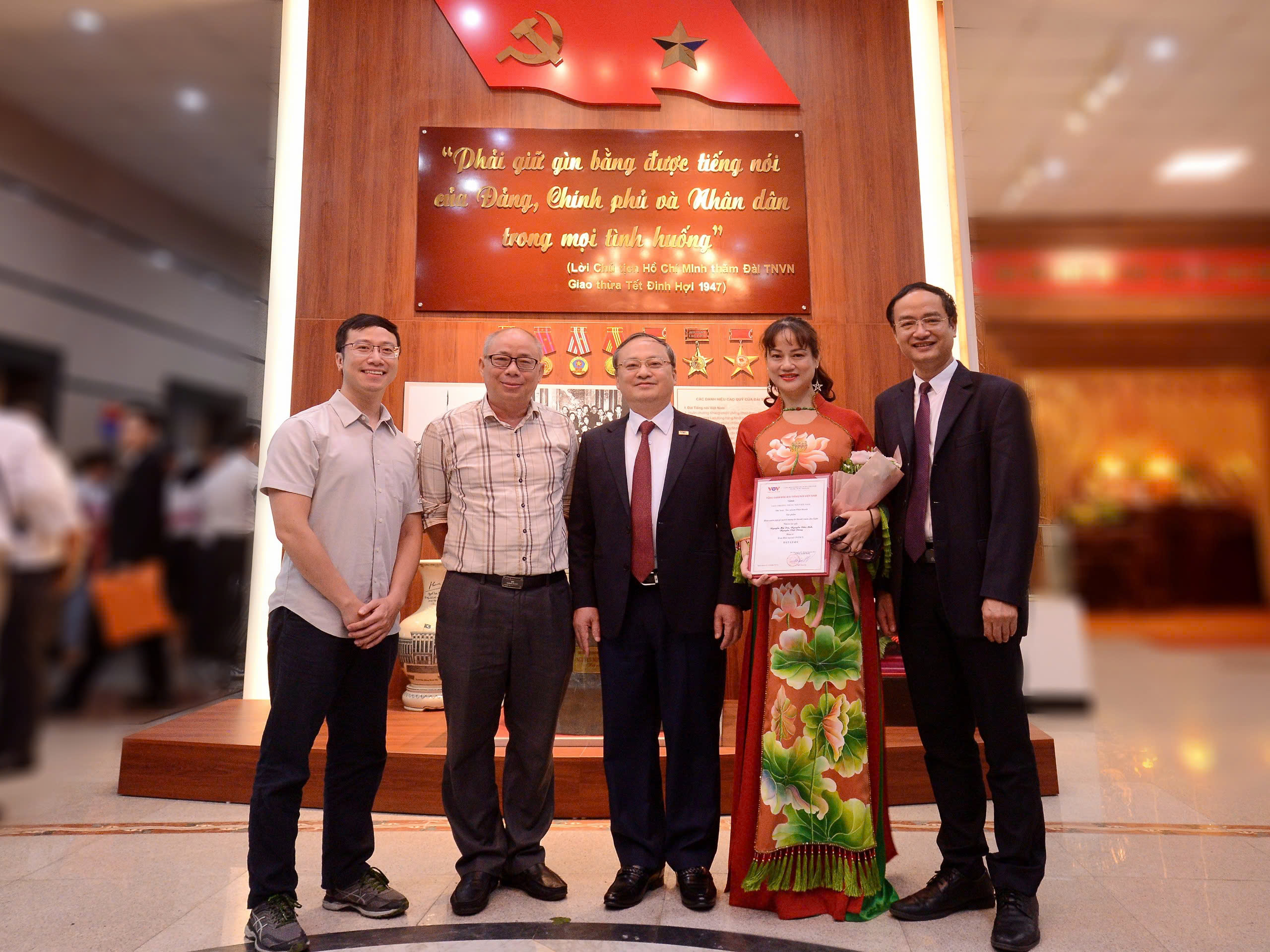 Nhà báo Nguyễn Mỹ Trà nhận giải Nhì Giải thưởng Toàn quốc về Thông tin Đối ngoại 2018 cho tác phẩm sách ảnh Trường Sa nơi ta đến.