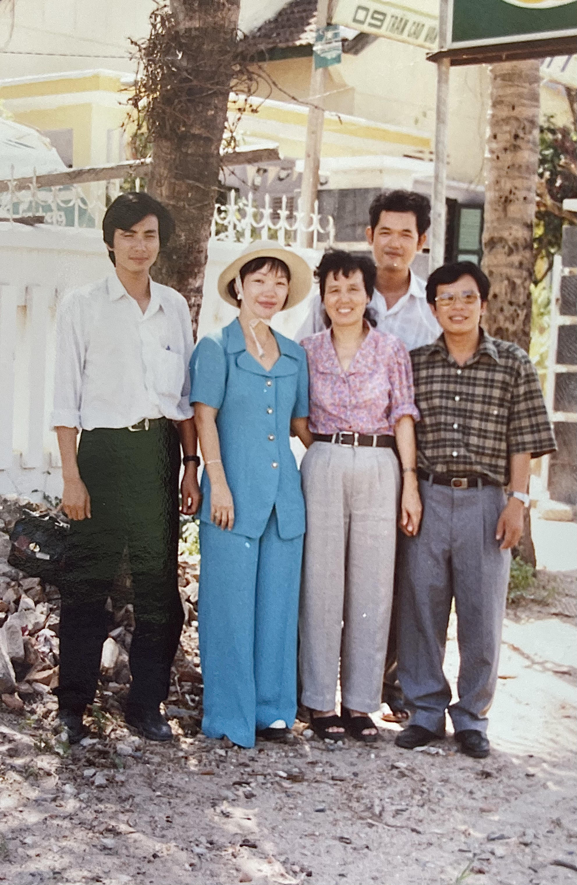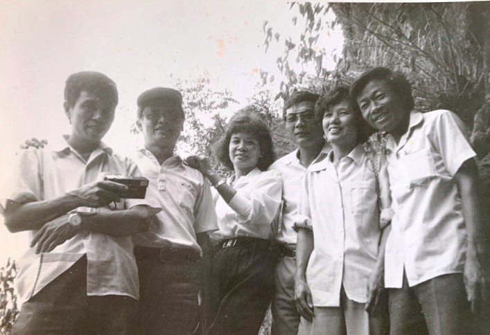 Nhà báo Huy Dung (Ngoài cùng bên phải), nhà báo Thụy Chóng (thứ hai từ phải sang) và nhà báo Huyền Yến (thứ tư từ phải sang) cùng các đồng nghiệp trong chuyến công tác ở tình Bắc Giang |