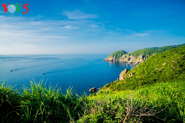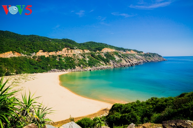 Bãi Môn nhìn toàn cảnh như một viên ngọc bích khổng lồ. |