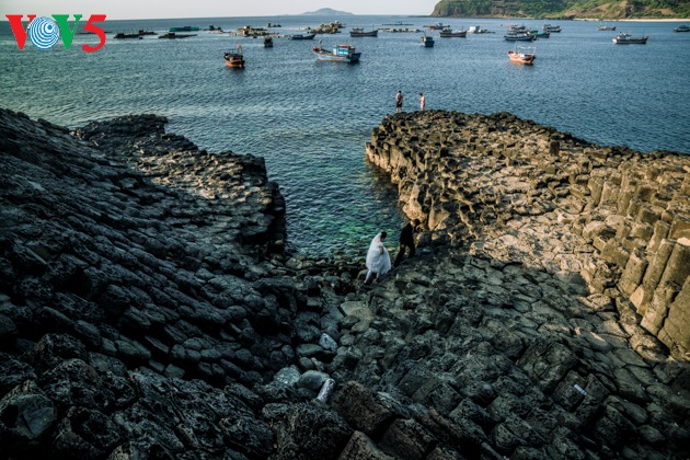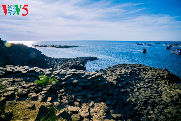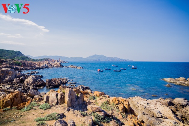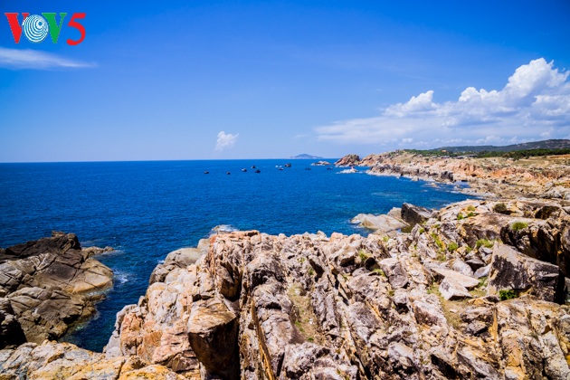 Bãi đá bên Gành Đèn tạo nên khung cảnh hoang sơ, kỳ vĩ. |