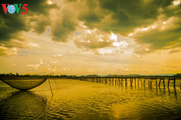 Chiều buông trên cầu Tuy An (còn gọi là cầu Ông Cọp), cây cầu gỗ dài nhất Việt Nam. |
