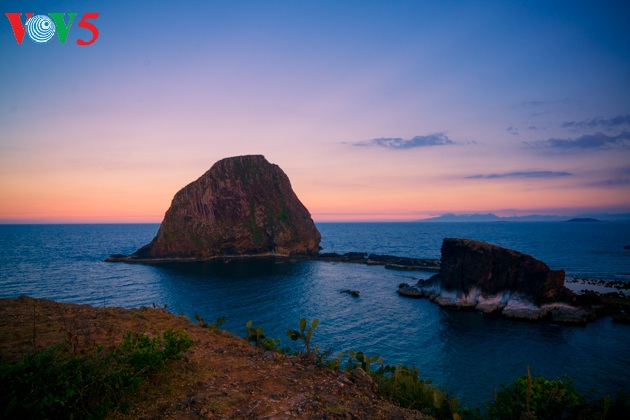 Không khí tĩnh lặng, hoang liêu của Hòn Yến buổi hoàng hôn. |
