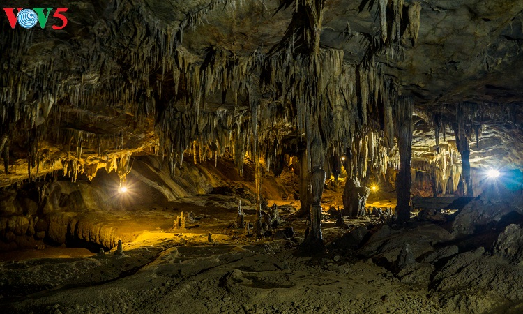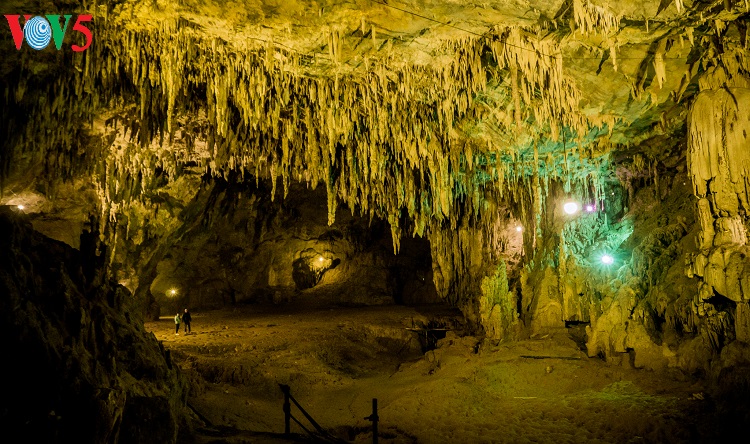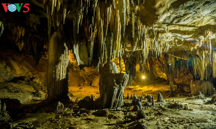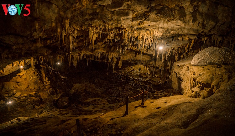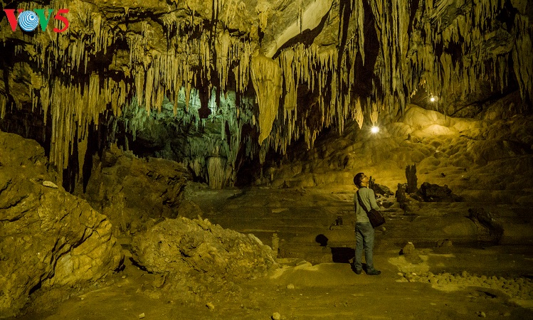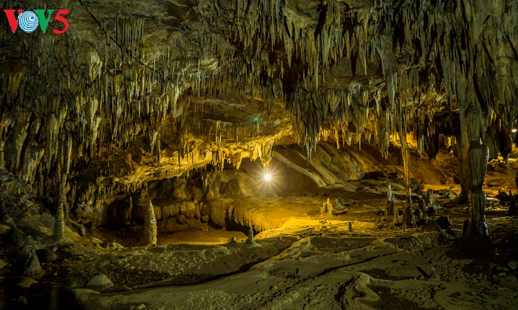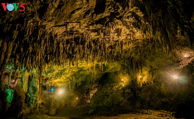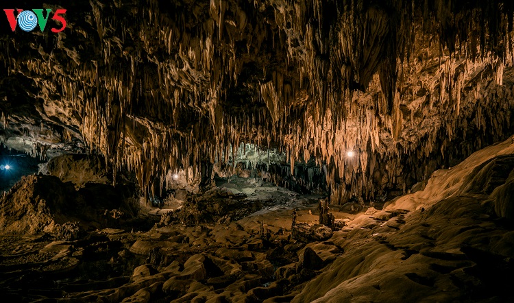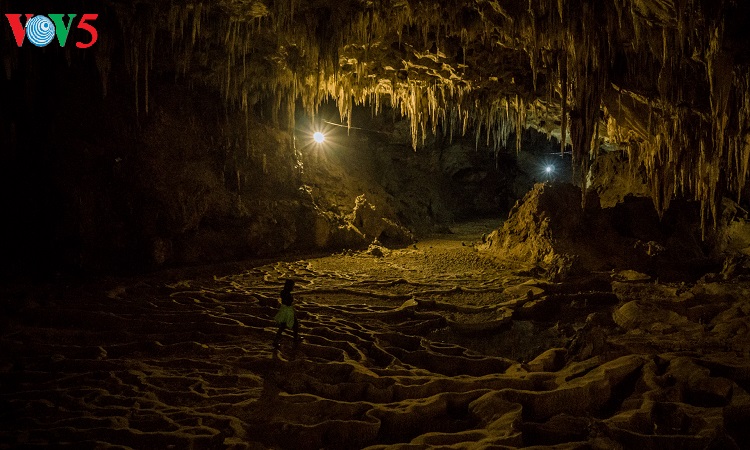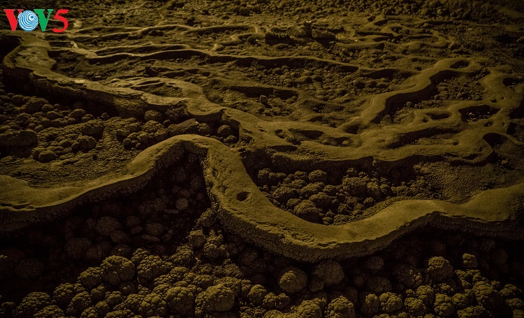 Những thạch nhũ và cấu tạo địa chất ở lòng động Thiên Đường giống như ruộng bậc thang trên núi đồi Tây Bắc. |