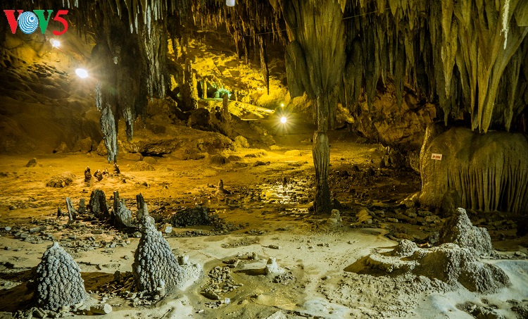Thạch nhũ mọc từ đất lên như những tháp ngọc tháp ngà. |