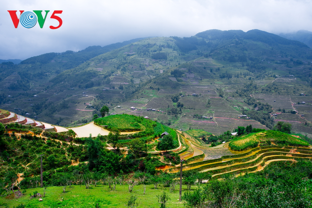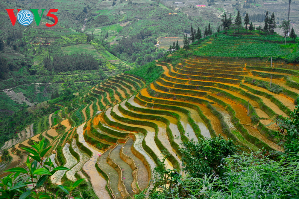 | Ruộng bậc thang "mùa nước đổ" tháng 5 của Hà Giang tạo thành một cảnh tượng đặc trưng, khó phai trong lòng du khách trong và ngoài nước. |