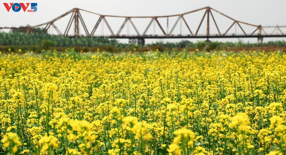 Những ngày đông xám xịt của Hà Nội được nhuộm màu vàng bởi những vạt cải ven sông. Hoa cải mang vẻ đẹp đậm hồn quê giữa chốn đô thị phồn hoa, tuy chẳng phải cao sang, đài các nhưng khi hòa mình vào cánh đồng hoa, ai nấy đều cảm thấy những bức ảnh mang nét đặc sắc riêng, vừa rực rỡ, vừa tươi mới.