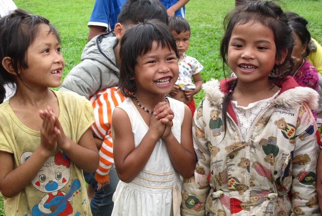 | Mỗi khi có đoàn từ thiện đến như thế này các em nhỏ luôn háo hức. |