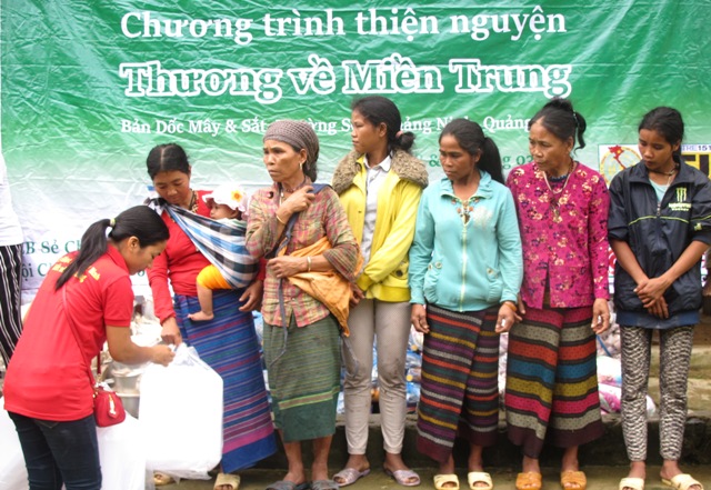 Hai trận lũ liên tiếp đổ vào miền Trung cuối năm 2016 gây thiệt hại nặng nề đến đời sống người dân tộc thiểu số Vân Kiều. Với tinh thần tương thân tương ái, Hội từ thiện Mái ấm Việt Nam ở Vương quốc Anh, Câu lạc bộ Sẻ chia sự sống Hà Nội, Câu lạc bộ Giọt hồng Quảng Bình vừa có chuyến thăm và tặng quà cho bà con dân tộc ở đây. Những món quà là các nhu yếu phẩm thiết thực với đời sống hàng ngày của bà con. Đó là can 20 lít để bà con dùng để đựng nước và gùi nước sinh hoạt, là chăn đắp, là gạo, muối, dầu ăn, cá khô, xoong nồi… Tổng số tiền tuy không lớn nhưng đây là tình cảm, tình yêu thương của miền xuôi dành cho bà con dân tộc thiểu số miền núi.