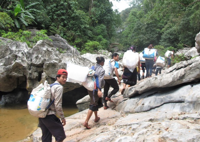 | Sau khi nhận quà, bà con lại vượt núi, băng rừng trở về bản xa. |