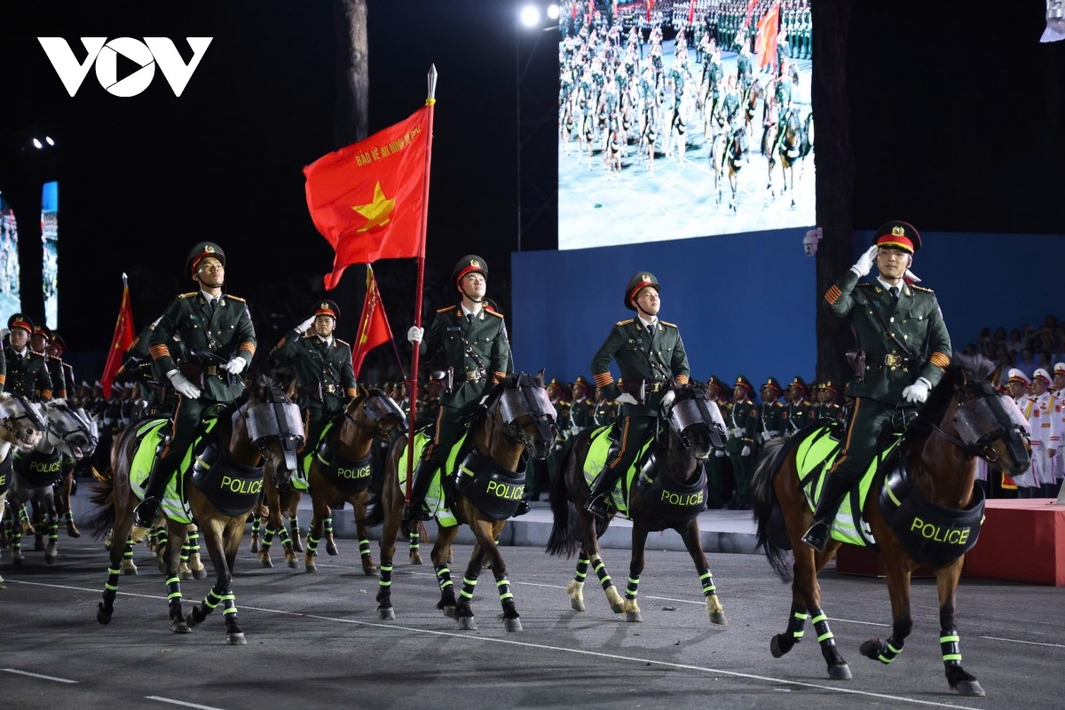 Chương trình được bắt đầu bằng màn biểu diễn trống hội với chủ đề “Bản hùng ca toàn thắng”, do 1.000 diễn viên là học viên của Học viện Cảnh sát nhân dân (Bộ Công an) biểu diễn. Tiếp đó là chương trình xếp hình nghệ thuật, chủ đề “Đất nước trọn niềm vui”, do Đoàn Nghi lễ Quân đội thực hiện. |
