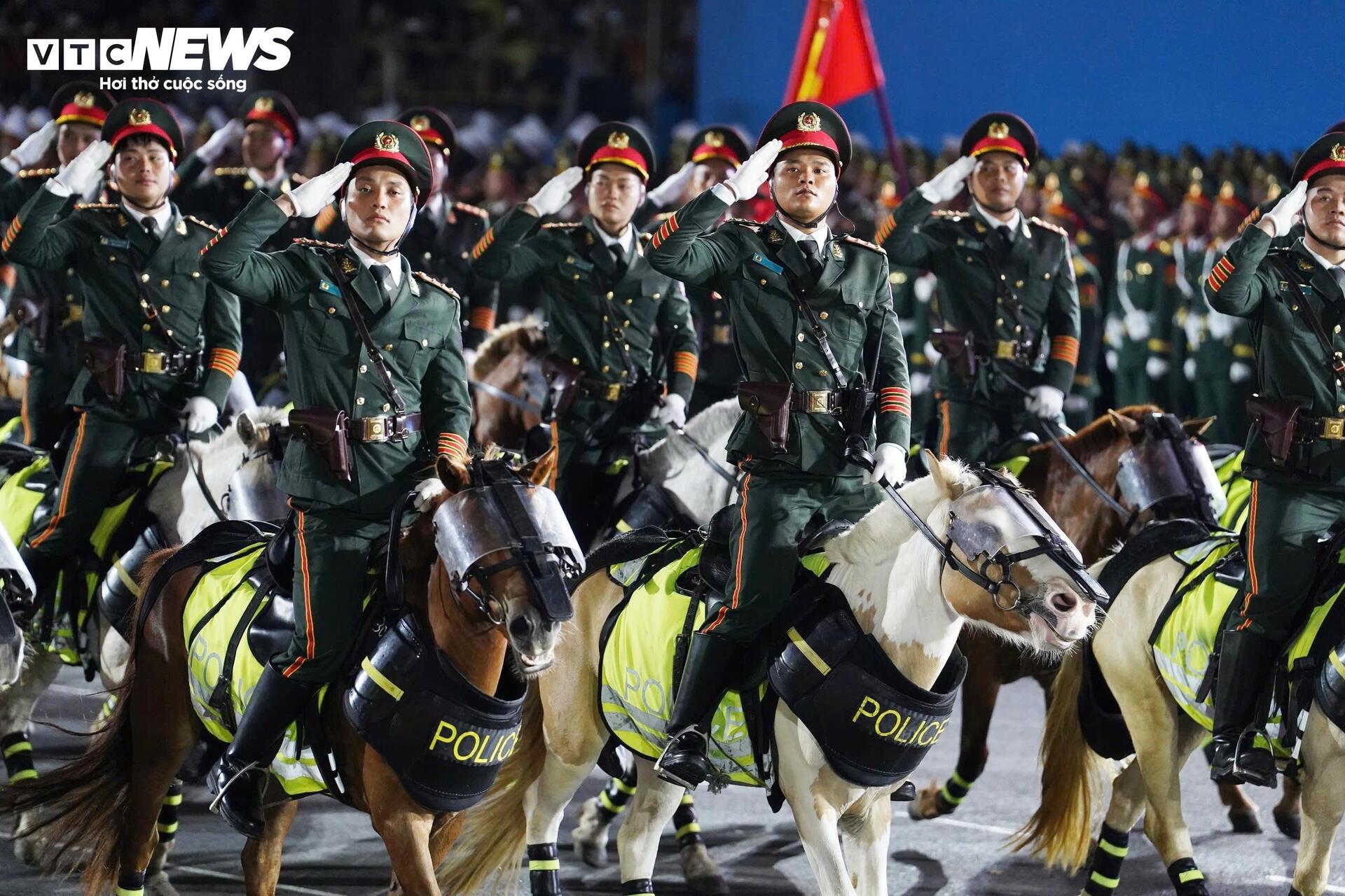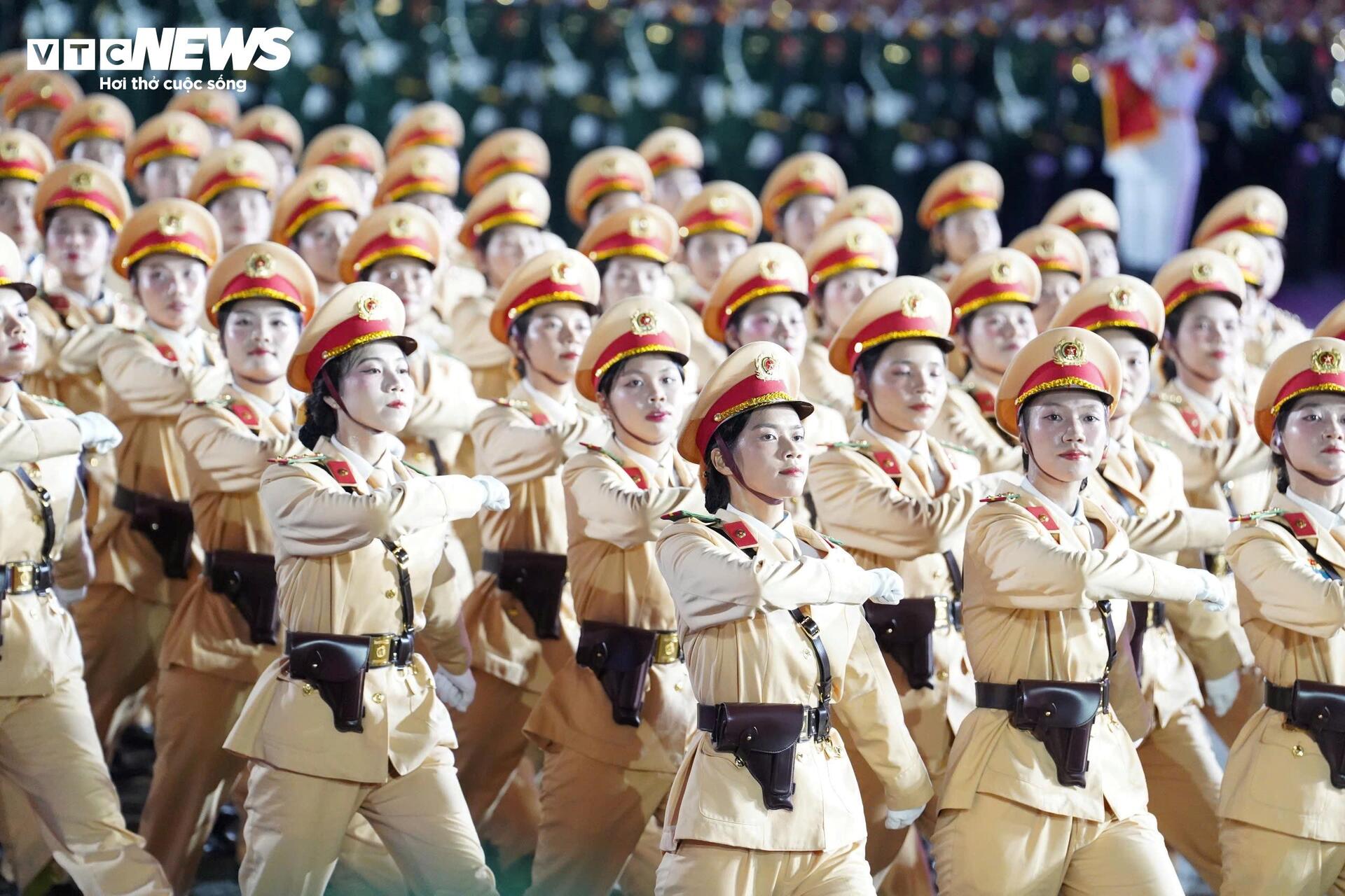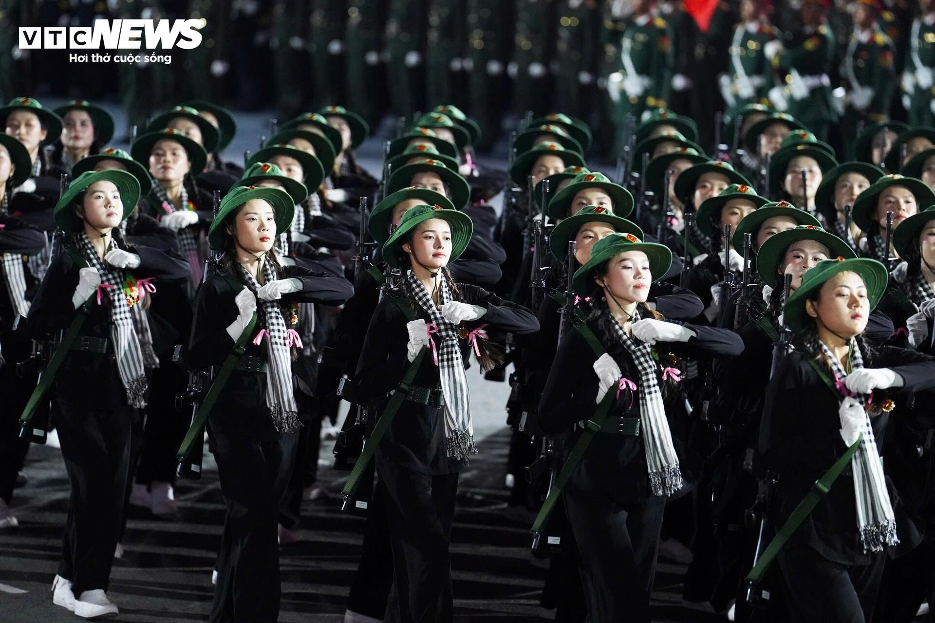 Các chiến sĩ hiên ngang bước đi trong đội hình, thể hiện tinh thần kỷ luật thép. |