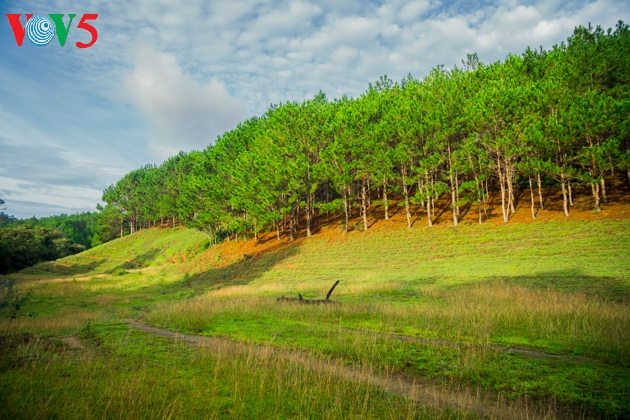 (VOV5) - Hai năm trở lại đây, Tà Năng – Phan Dũng (huyện Tuy Phong, tỉnh Bình Thuận) luôn được những người yêu du lịch khám phá, tìm về với vẻ đẹp nguyên sơ của thiên nhiên, núi rừng. Địa điểm này được dân mê du lịch bình chọn là cung đường trekking đẹp nhất Việt Nam. Hành trình trekking 3 ngày 2 đêm hoặc 2 ngày 1 đêm Tà Năng – Phan Dũng thực sự là hành trình khá thử thách nhưng lại đem đến nhiều cảm xúc trước vẻ đẹp xanh ngời, trong trẻo, bình yên. Đó là vẻ đẹp của những rừng thông vi vu gió lộng, là những đồi cỏ xanh mướt trải ra bất tận, ngút ngàn, là rừng nguyên sinh thâm u với cây cỏ non tơ ở dưới. Trên con đường băng rừng, lội suối, xuyên qua những đồi cỏ ấy, đôi khi bạn sẽ bắt gặp những đóa hoa rừng duyên dáng, xinh tươi khiến những trái tim yêu cái đẹp chết lặng. Và hơn hết, khi trải nghiệm trekking Tà Năng – Phan Dũng, bạn được hòa cùng với thiên nhiên, quên mọi ưu phiền để tâm hồn được thanh lọc giữa không gian trong xanh.