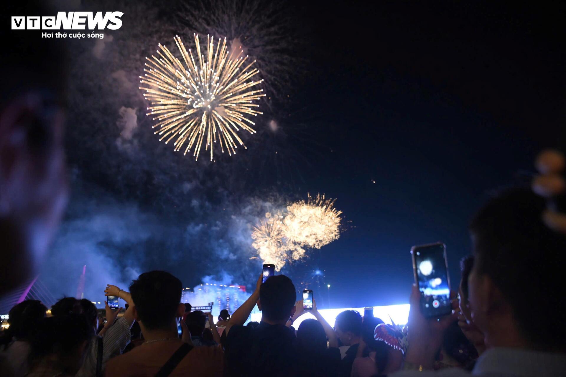 | Nhiều người dân tranh thủ ghi lại khoảnh khắc pháo hoa trên bầu trời. Thời gian bắn pháo hoa lần tiếp theo vào ngày 26/4 cũng tại Công viên Bờ sông Sài Gòn (TP Thủ Đức). |