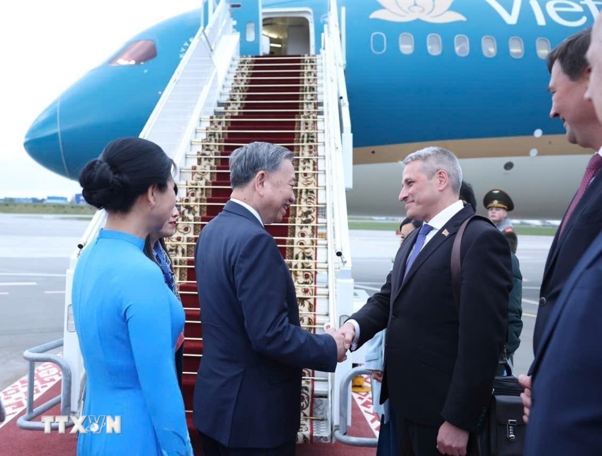 Tối 12/5, Tổng Bí thư Tô Lâm và Phu nhân cùng Đoàn đại biểu cấp cao Việt Nam rời Thủ đô Minsk lên đường về nước, kết thúc tốt đẹp chuyến thăm cấp Nhà nước tới Belarus. Ảnh: TTXVN |