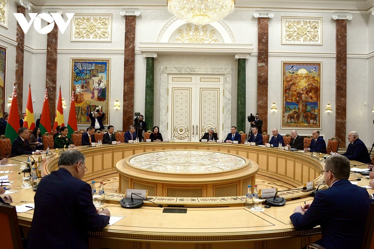 Tại cuộc hội kiến giữa Tổng Bí thư Tô Lâm và Thủ tướng Belarus Aleksandr Turchin, hai bên nhất trí xây dựng một chương trình hành động để triển khai quan hệ Đối tác chiến lược vừa nâng cấp. Hai bên sẽ tăng cường hợp tác công nghiệp, nhất là sản xuất ô tô và máy kéo; phát triển hệ thống vận tải hàng hóa đa phương thức; tạo điều kiện thuận lợi cho trao đổi thương mại, du lịch, giao lưu nhân dân… |