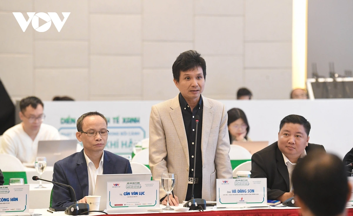 | Ông Hà Đăng Sơn - Giám đốc Trung tâm Nghiên cứu năng lượng và Tăng trưởng Xanh chia sẻ trong phần thảo luận về "Hành trình chuyển đổi và xây dựng thị trường xanh của doanh nghiệp" |