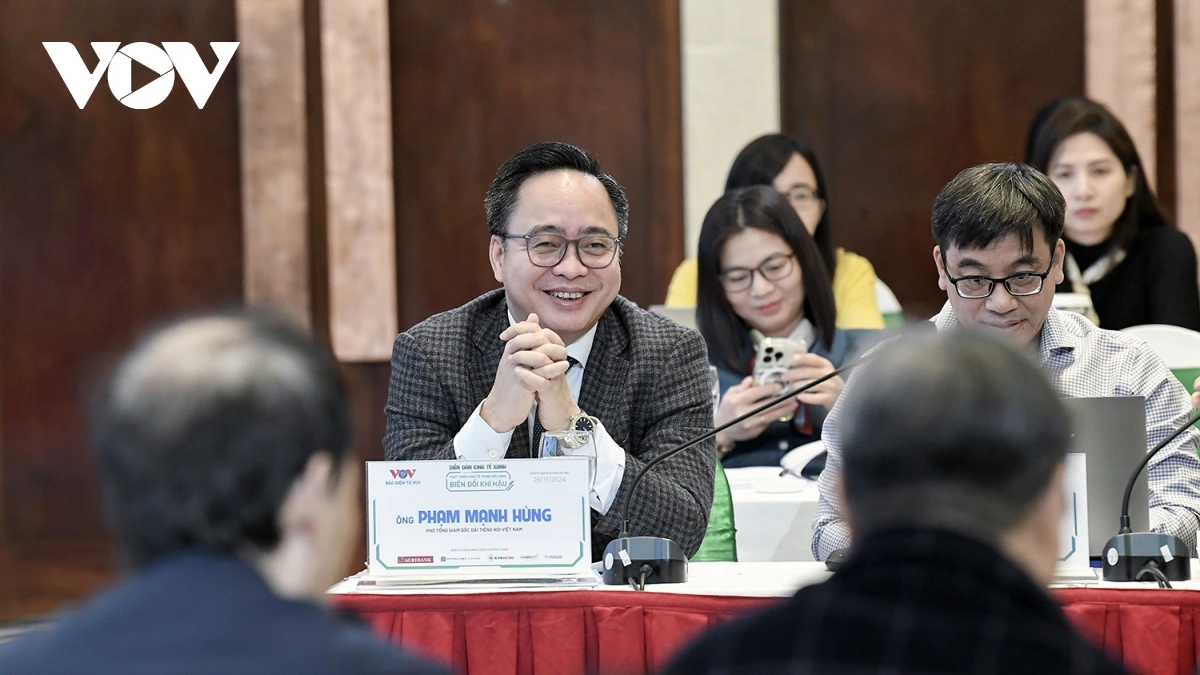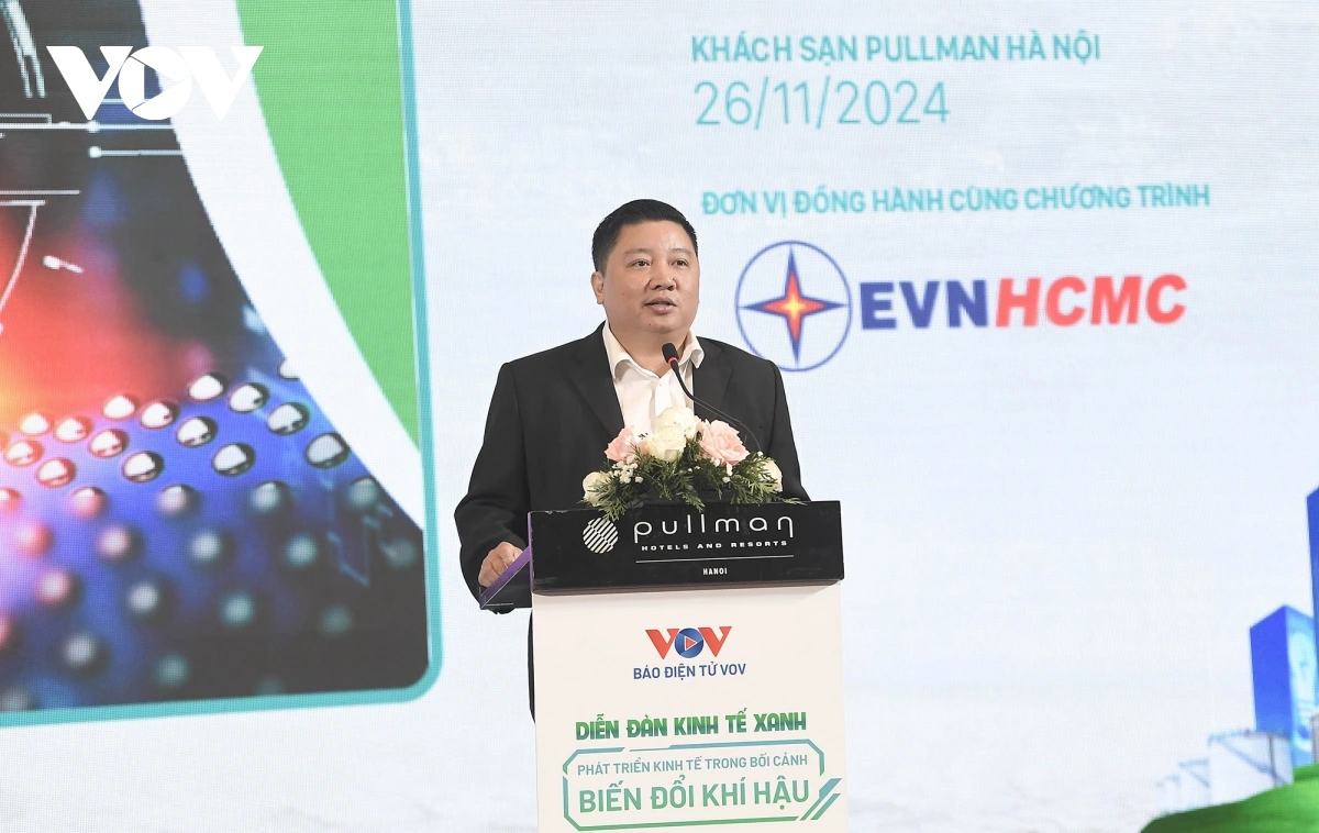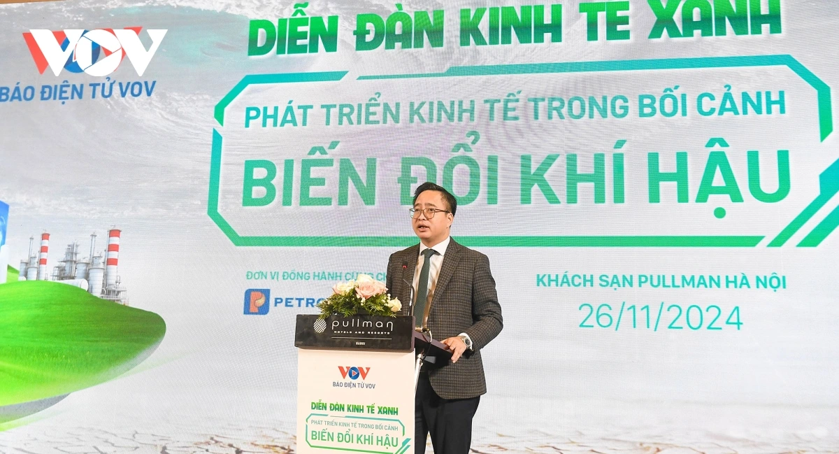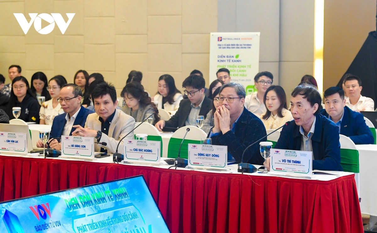 | "Diễn đàn kinh tế xanh: Phát triển kinh tế trong bối cảnh biến đổi khí hậu" do Báo Điện tử VOV tổ chức với sự đồng hành của Ngân hàng Nông nghiệp và Phát triển Nông thôn Việt Nam (Agribank), Công ty Cổ phần Nhiên liệu bay Petrolimex, Tổng Công ty điện lực thành phố Hồ Chí Minh, Tổng Công ty Cổ phần Bia – Rượu – Nước giải khát Hà Nội (Habeco), Tổng Công ty Cổ phần Bảo hiểm Petrolimex (Pjico). Đây là nơi để các nhà lãnh đạo, nhà khoa học, doanh nghiệp và cộng đồng cùng thảo luận, trao đổi thông tin và đẩy mạnh tuyên truyền, giáo dục, nâng cao nhận thức của nhân dân, cộng đồng về vai trò, ý nghĩa cũng như những thách thức khó khăn, vướng mắc, đồng thời đưa ra những cơ hội, chính sách mới trong phát triển kinh tế xanh bền vững gắn với biến đổi khí hậu tại Việt Nam. |