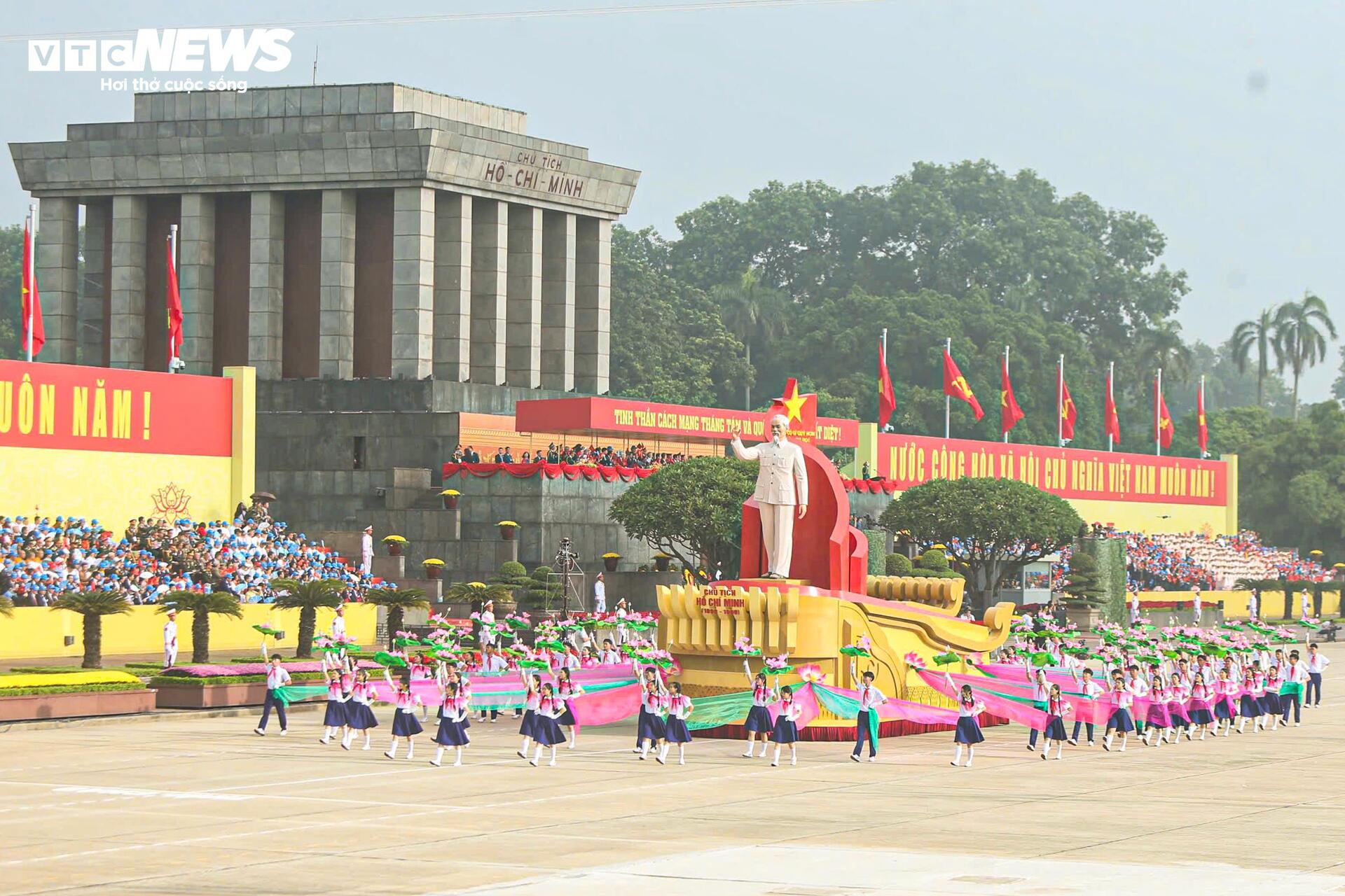 Đi sau đó là đội hình xe rước chân dung Chủ tịch Hồ Chí Minh tiến vào lễ đài.