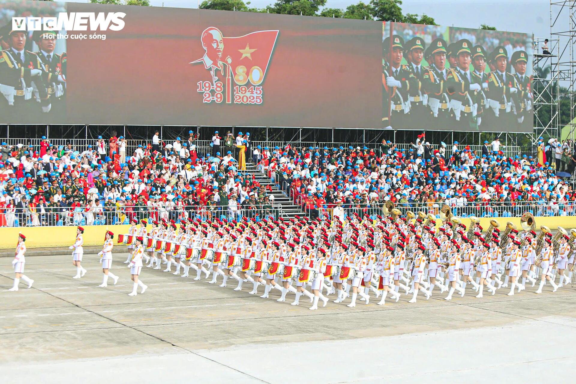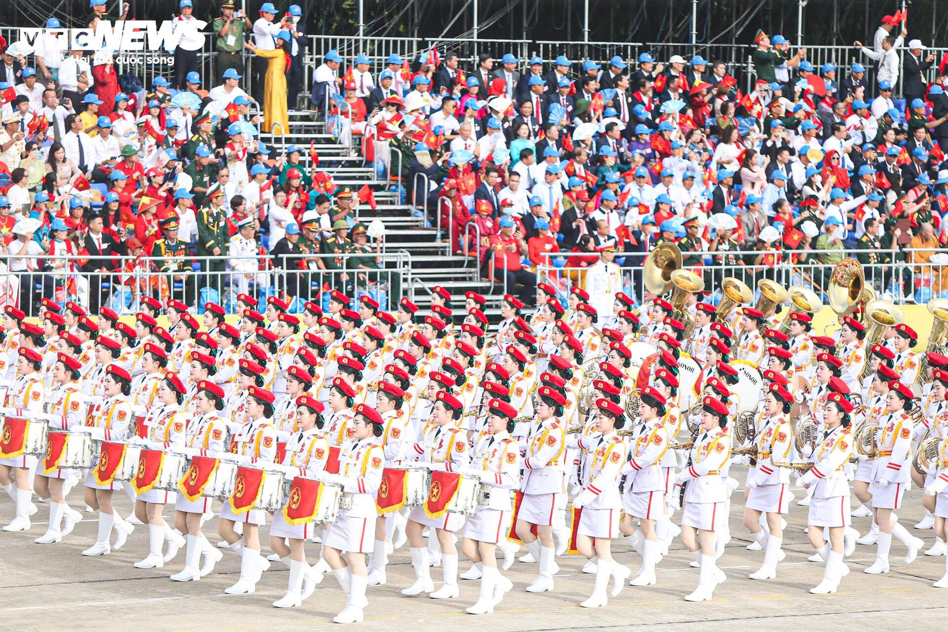Khối Nữ quân nhạc Việt Nam tiến qua lễ đài.