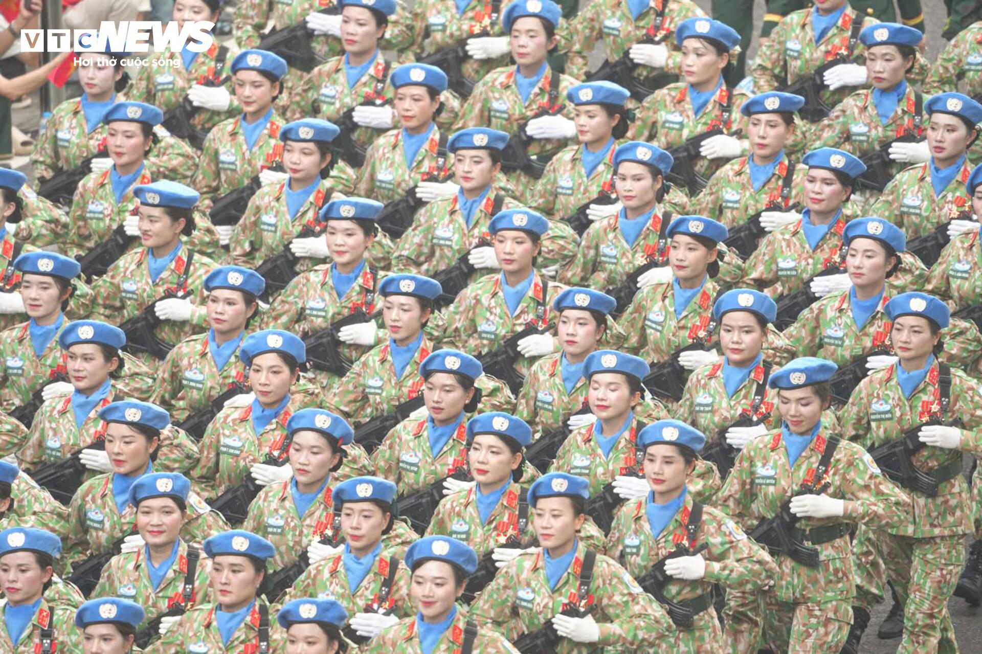 Khối Nữ sĩ quan gìn giữ hòa bình, đại diện cho lực lượng mũ nồi xanh với hành trình hơn 10 năm đưa hơn 1.000 chiến sĩ tham gia thực hiện nhiệm vụ gìn giữ hòa bình Liên hợp quốc.