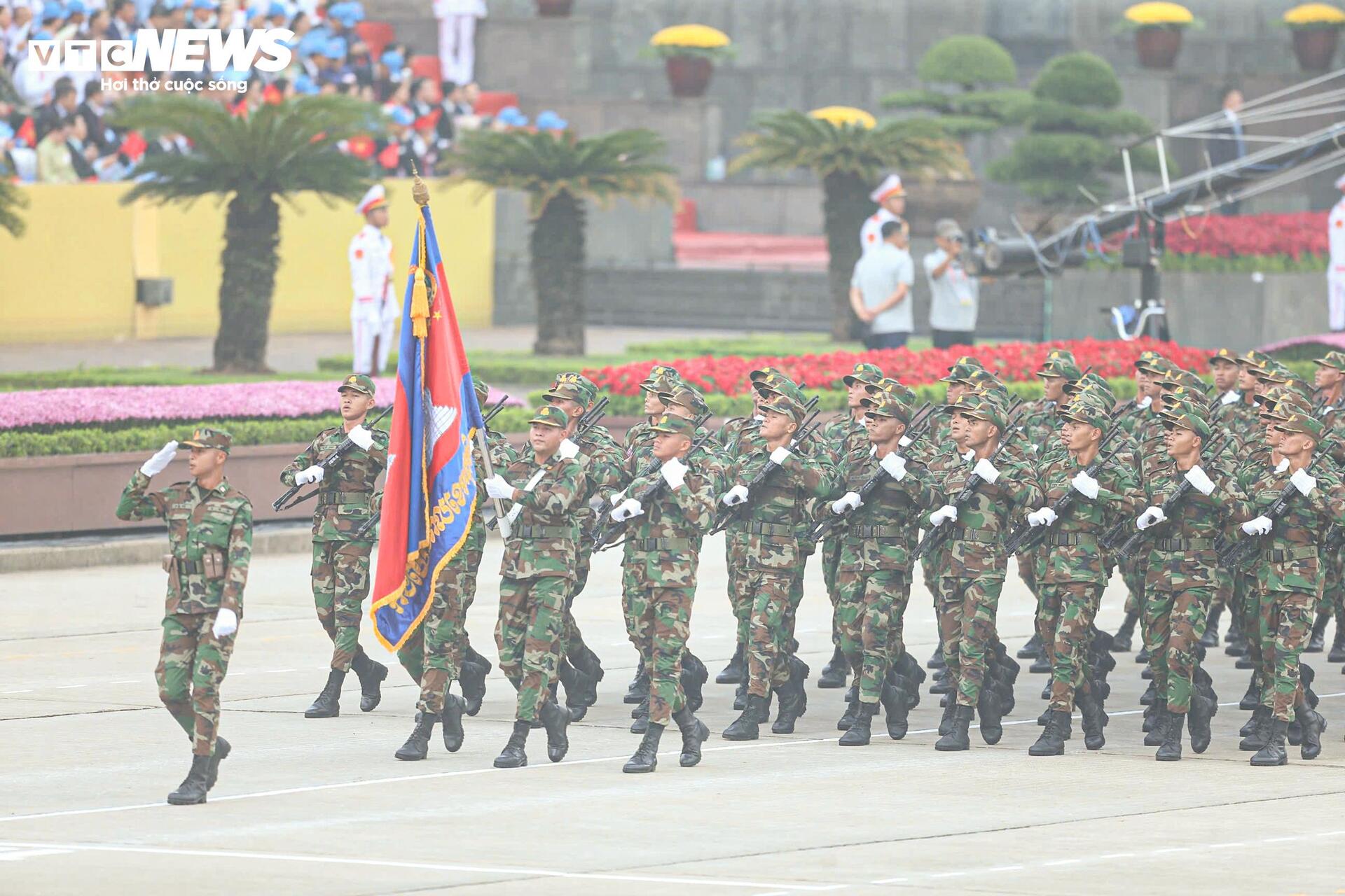 Khối Quân đội Hoàng Gia Campuchia tiến qua lễ đài. Trong truyền thống hữu nghị, đoàn kết lâu đời giữa hai nước, hai Quân đội Campuchia - Việt Nam luôn sát cánh bên nhau, chiến đấu và chiến thắng, giành độc lập, tự do cho đất nước mình…