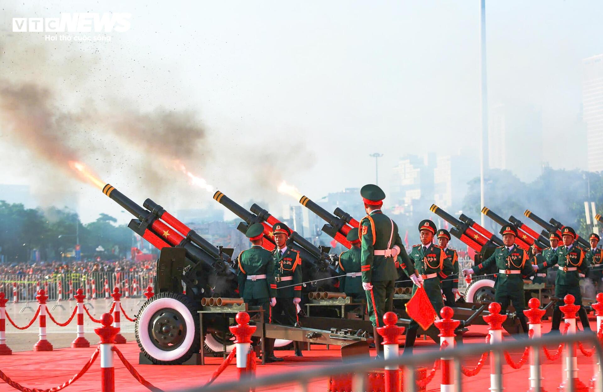 6h45, Quân nhạc cử Quốc thiều. Cùng lúc, 21 loạt đại bác tại Sân vận động Mỹ Đình trên nền Quốc thiều 54 giây do chiến sĩ Lữ đoàn Pháo binh 45 khai hỏa. Đây là nghi thức cao nhất trong các sự kiện quan trọng của quốc gia.