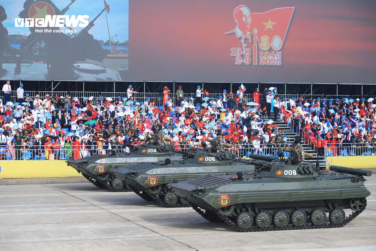 Dẫn đầu khối xe thiết giáp do Tổng cục Công nghiệp Quốc phòng sản xuất là xe chiến đấu bộ binh XCB-01 - xe bọc thép bánh xích được trang bị pháo nòng trơn 73 mm, súng phòng không 12,7 mm, súng đại liên 7,62 mm và tên lửa chống tăng B72. Tiếp theo là xe thiết giáp XTC-02 - xe được trang bị súng máy phòng không 12,7 mm và đại liên 7,62 mm.