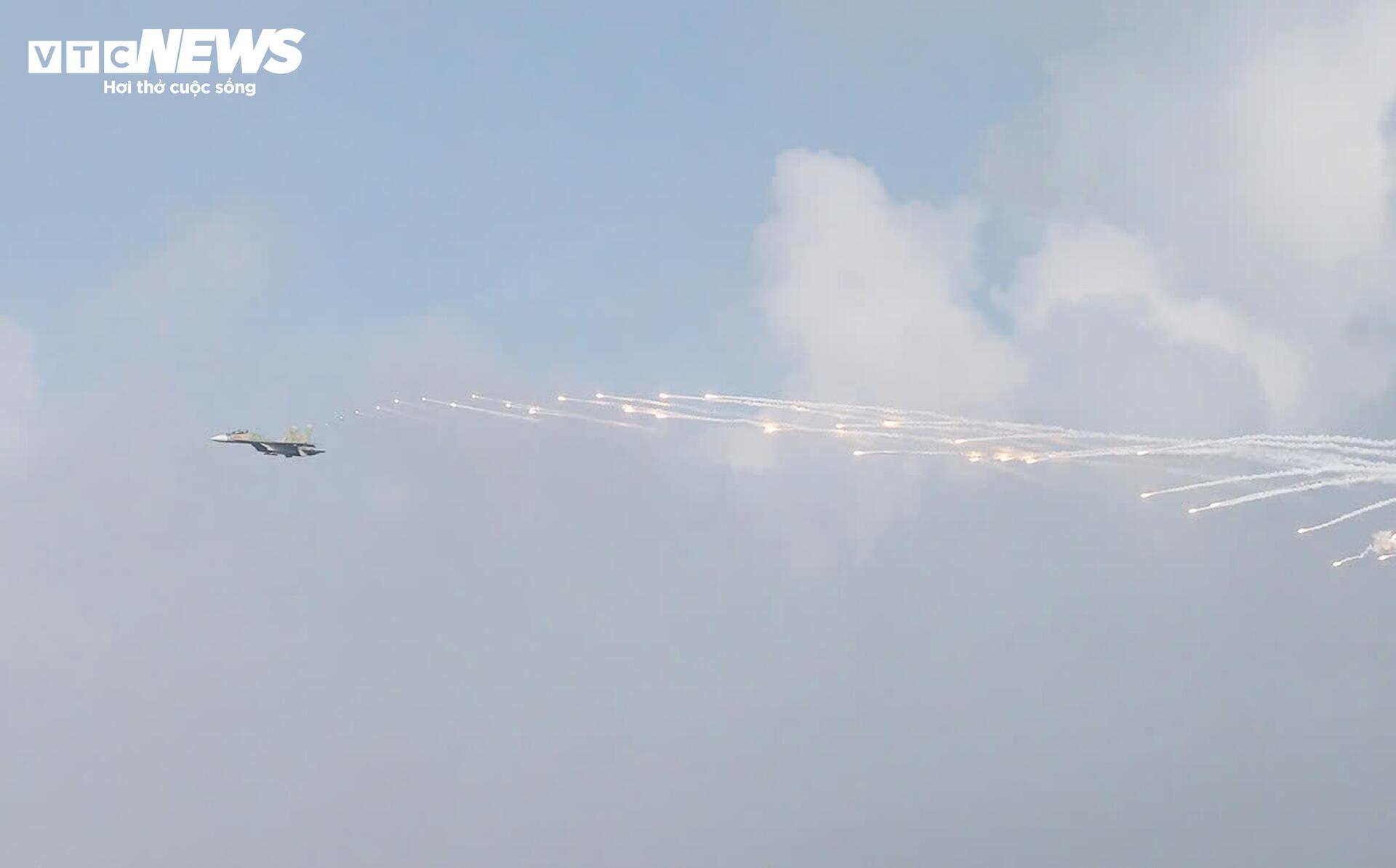 Màn thả bẫy nhiệt của biên đội máy bay tiêm kích Su-30MK2.