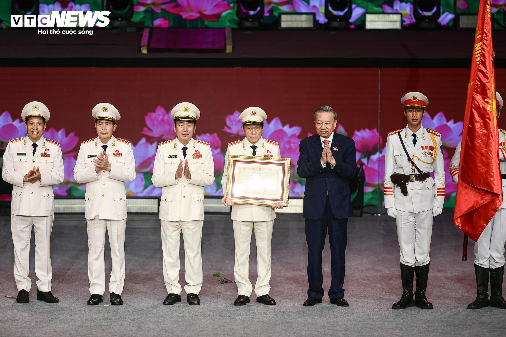 Thay mặt lãnh đạo Đảng, Nhà nước, Tổng Bí thư Tô Lâm trao tặng Huân chương Sao Vàng lần thứ 5 cho lực lượng Công an Nhân dân. |
