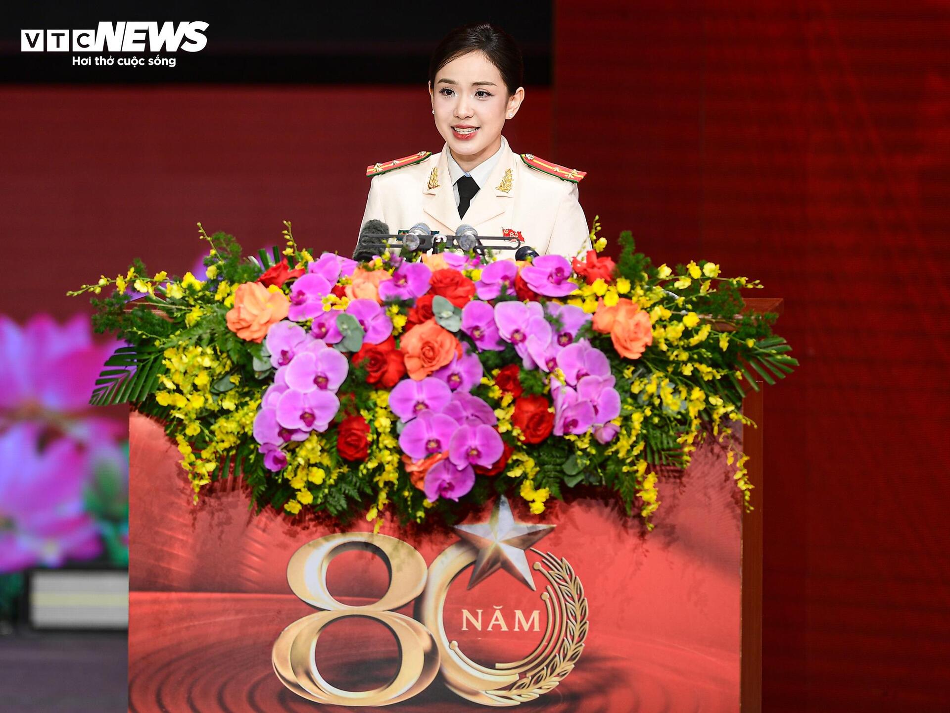 Thượng uý Trần Hà My, đại diện cho tuổi trẻ Công an Nhân dân phát biểu tại Lễ kỷ niệm. |
