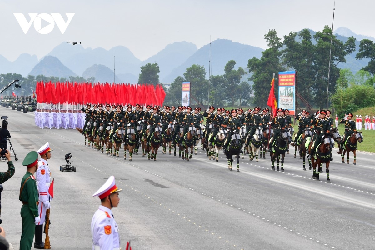 Khối Cảnh sát cơ động kỵ binh là khối chiến sĩ cuối cùng tiến qua lễ đài trước khi các vũ khí, khí tài xuất hiện. |