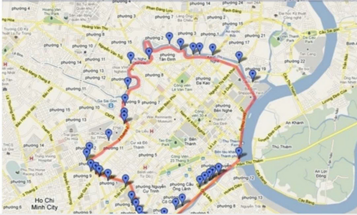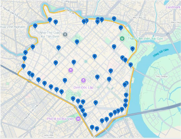 | Khu vực thí điểm vùng phát thải thấp tại trung tâm TP.HCM giới hạn bởi 15 cây cầu và 17 tuyến đường. (Nguồn: TTQLGTCC) |