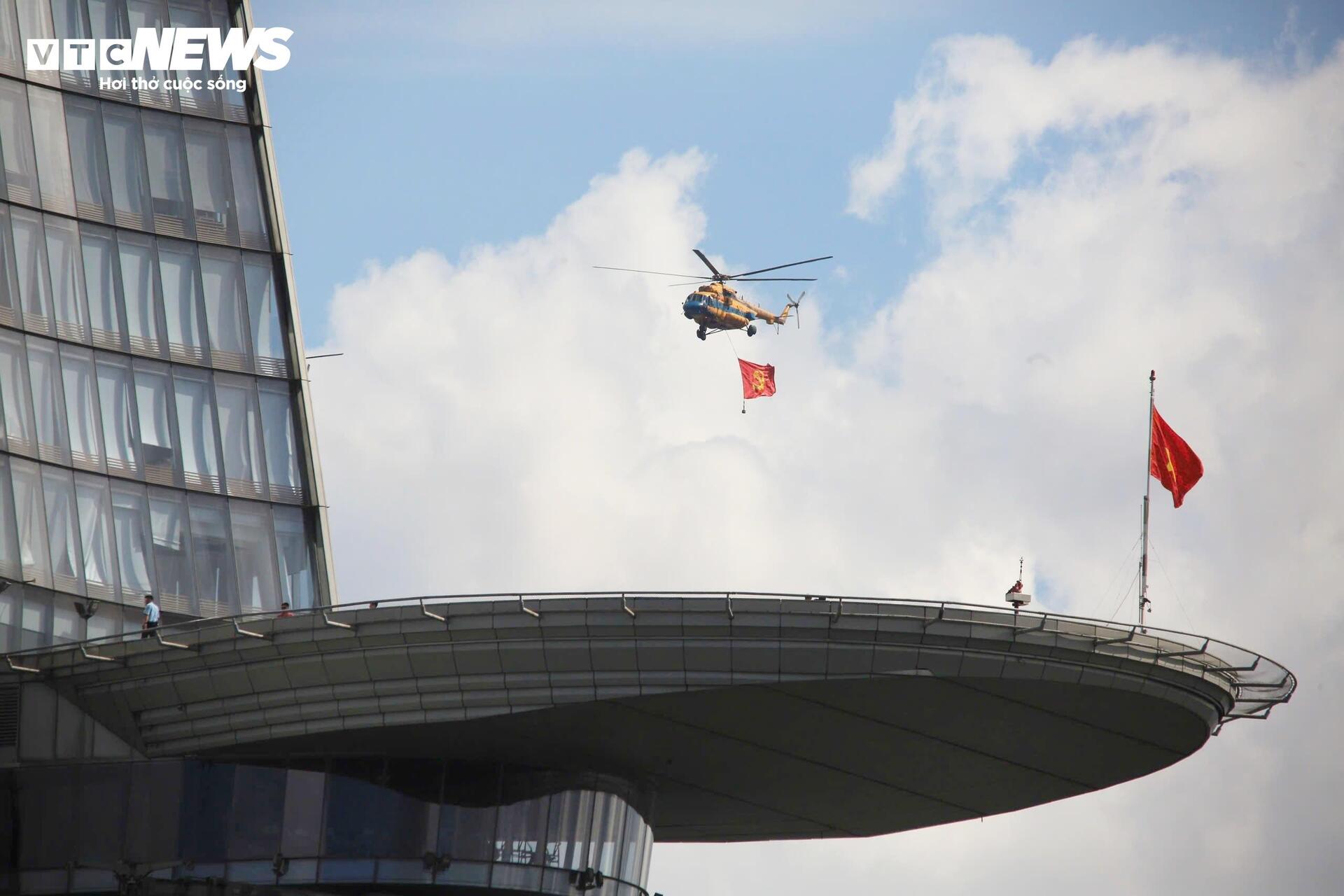| Âm thanh gầm rú của động cơ phản lực từ các chiến đấu cơ cùng tiếng cánh quạt đặc trưng của trực thăng vang vọng trên không khiến người dân, du khách tại TP.HCM không khỏi trầm trồ. |
