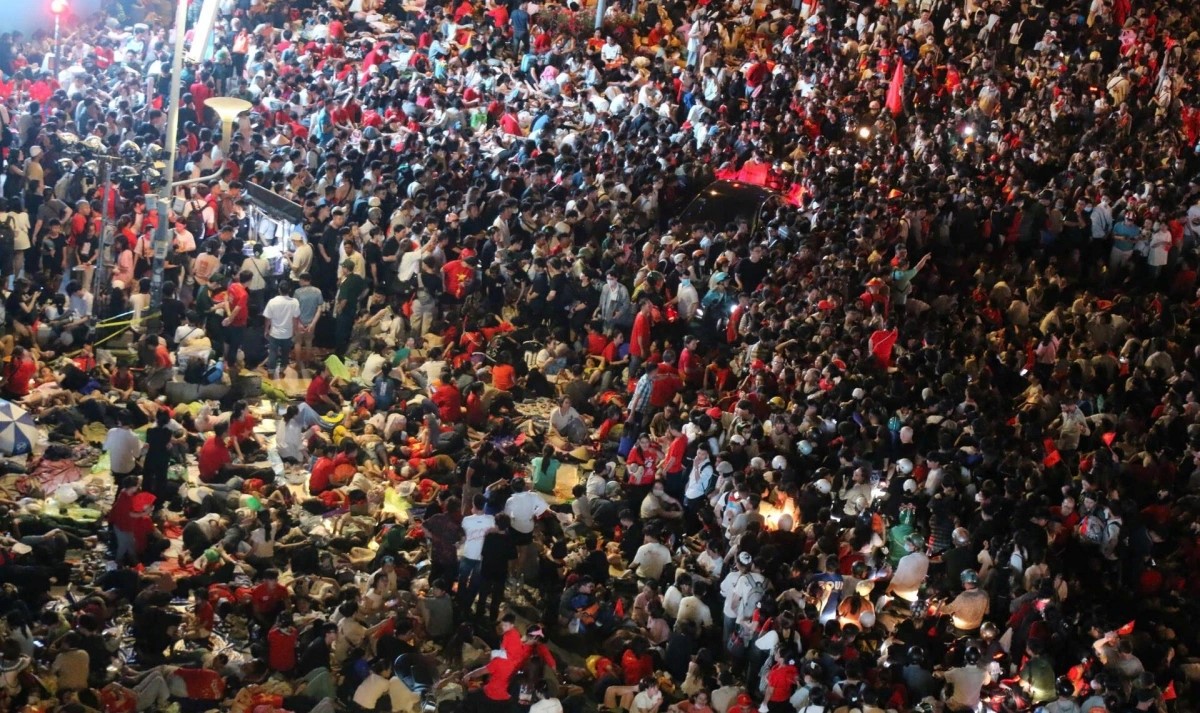 Biển người chờ xuyên đêm để xem diễu binh, diễu hành.