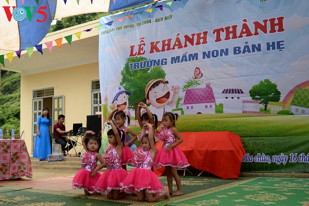 (VOV5) - Năm học mới 2017-2018, hơn 80 trẻ mầm non ở Bản Hẹ, xã Xá Nhè, huyện Tủa Chùa, tỉnh Điện Biên được học trong những phòng học khang trang, kiên cố. Điểm trường mầm non Bản Hẹ gồm 3 phòng học kiên cố được Hội Canh Thân 1980 Việt Nam tài trợ với tổng số tiền 350.000.000 đồng. Công trình đã hoàn thành đúng tiến độ để các con hào hứng bước vào năm học mới.
