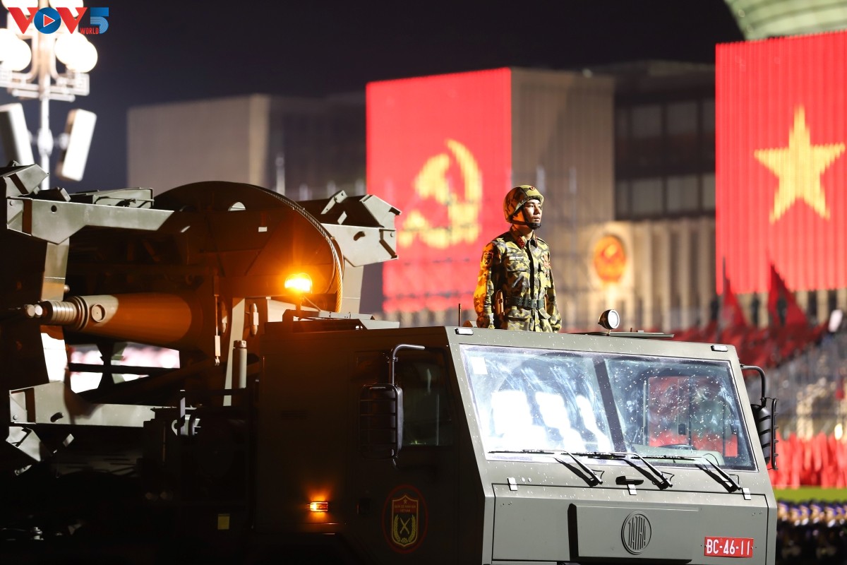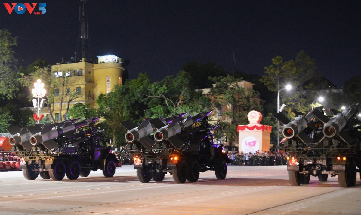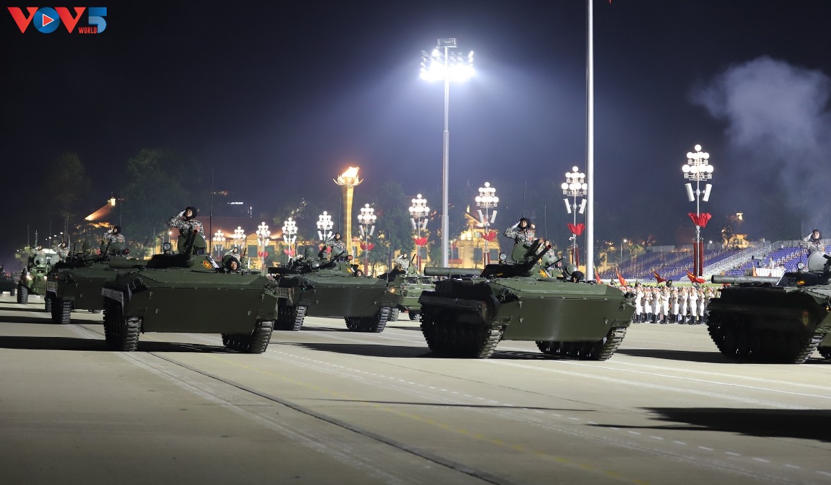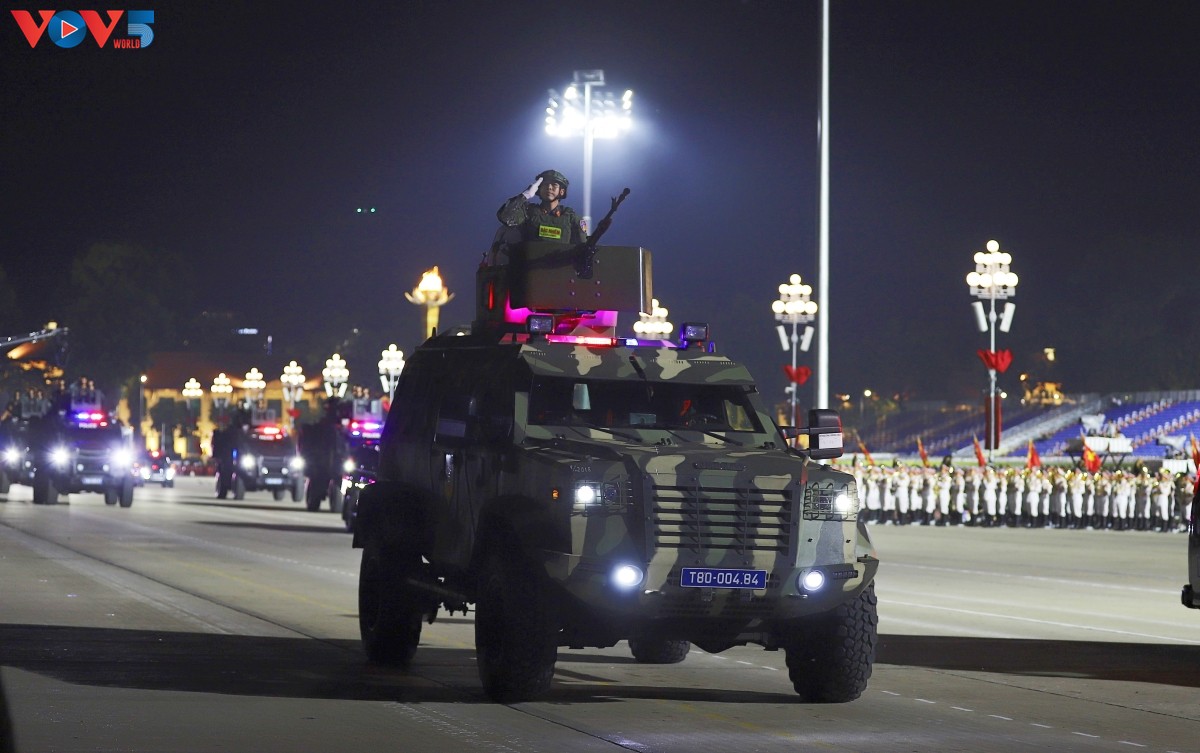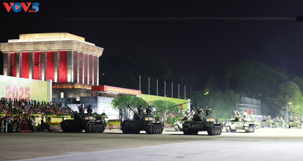 (VOV5) - Tối 24/8, trên Quảng trường Ba Đình lịch sử diễn ra buổi tổng hợp luyện diễu binh, diễu hành lần thứ hai chuẩn bị cho Lễ kỷ niệm 80 năm Cách mạng Tháng Tám thành công và Quốc khánh 2/9. Nhiều loại vũ khí, khí tài hiện đại đã được tập kết, thể hiện sức mạnh của Quân đội nhân dân và Công an nhân dân Việt Nam.