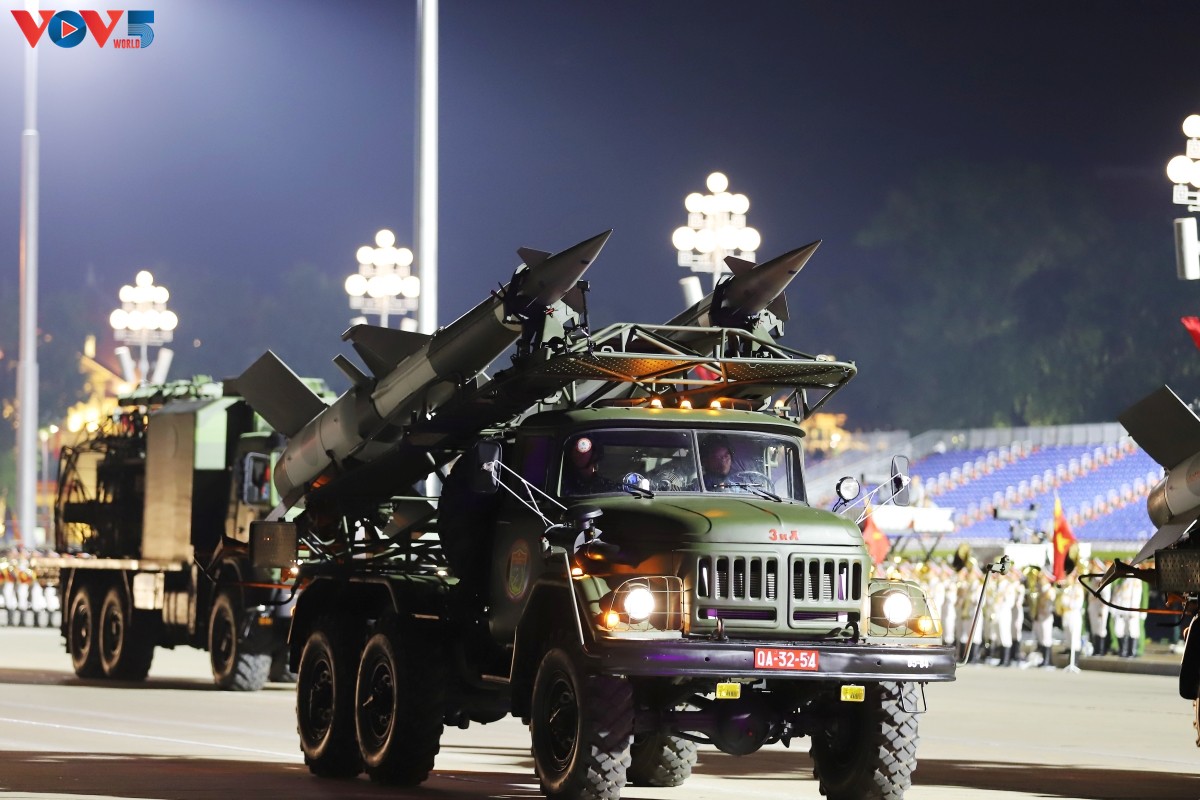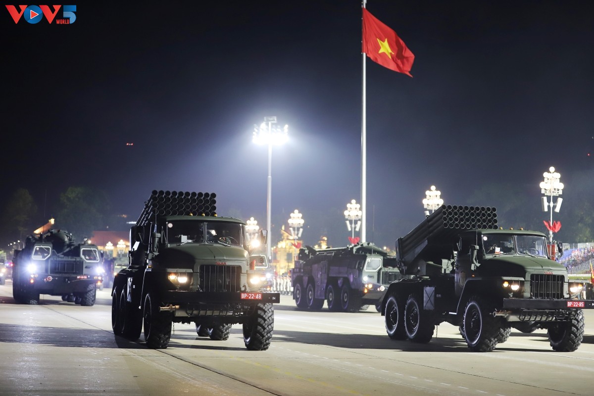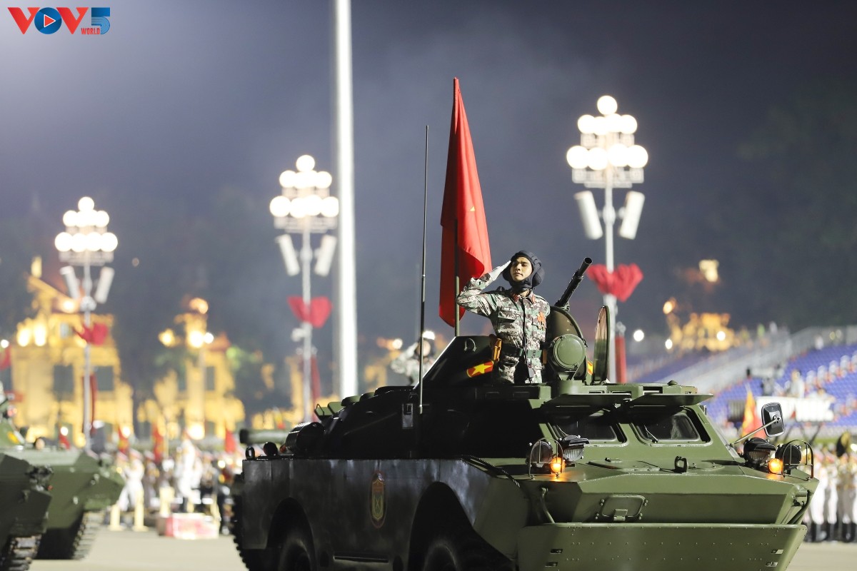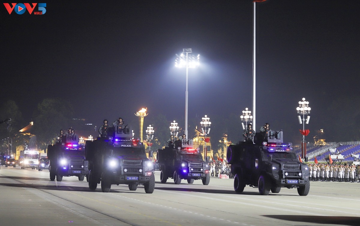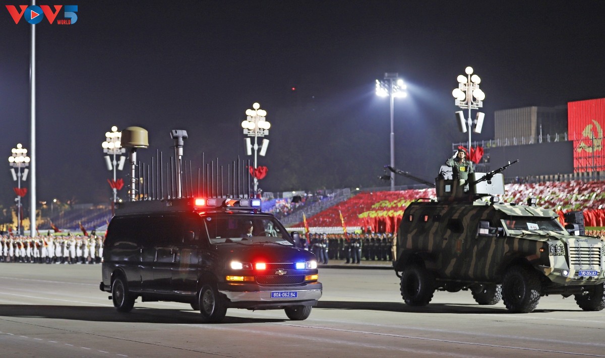 (VOV5) - Tối 24/8, trên Quảng trường Ba Đình lịch sử diễn ra buổi tổng hợp luyện diễu binh, diễu hành lần thứ hai chuẩn bị cho Lễ kỷ niệm 80 năm Cách mạng Tháng Tám thành công và Quốc khánh 2/9. Nhiều loại vũ khí, khí tài hiện đại đã được tập kết, thể hiện sức mạnh của Quân đội nhân dân và Công an nhân dân Việt Nam.