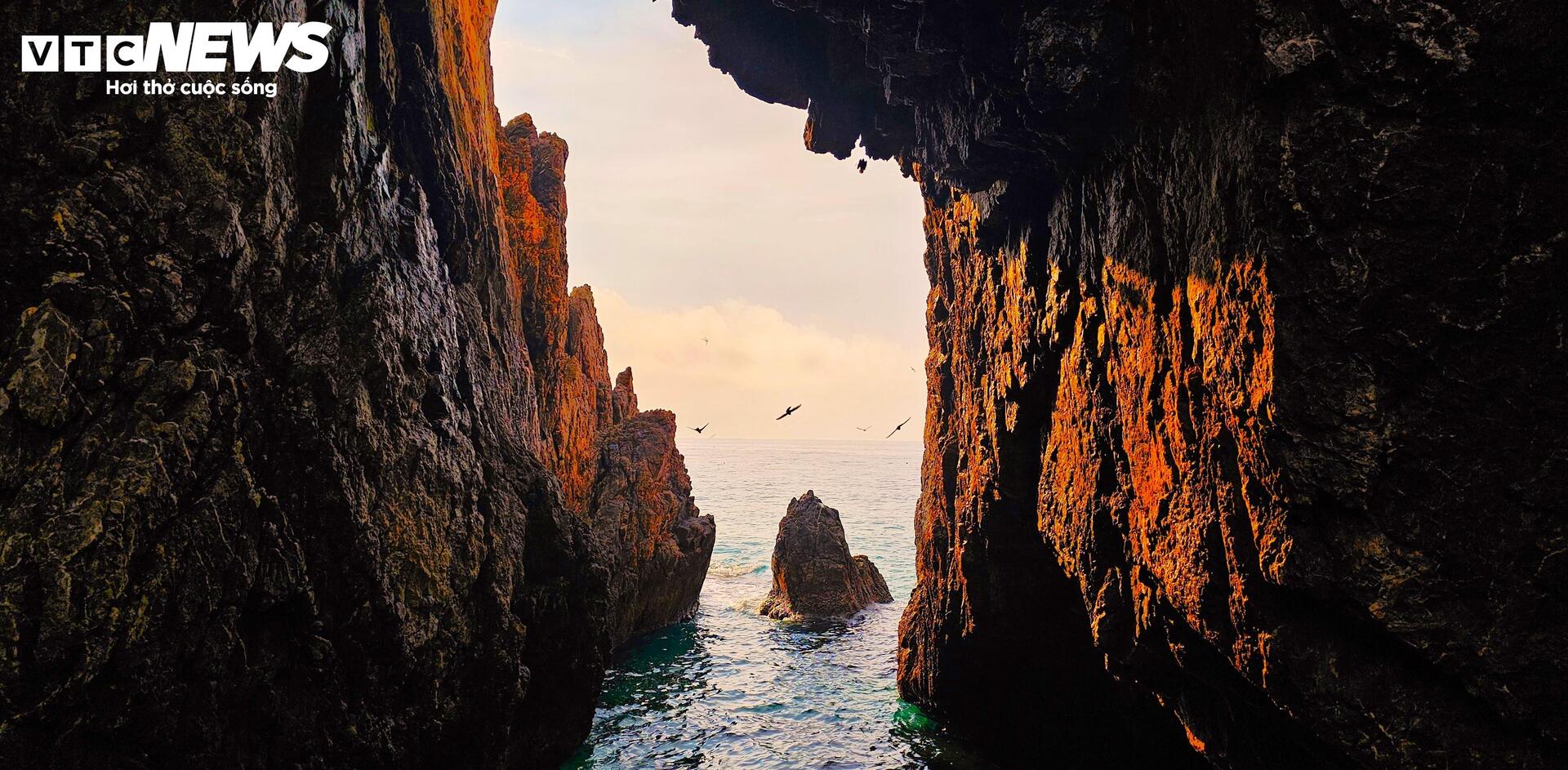 | Những khối đá được bào mòn bởi sóng biển và gió trời qua hàng triệu năm, khoác lên mình chiếc áo màu xám rêu phong, điểm xuyết thêm chút sắc vàng của nắng chiều, càng làm tăng thêm vẻ cổ kính và huyền bí cho mũi Vi Rồng. |