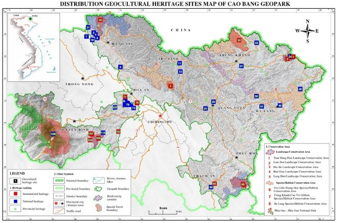 Công viên Địa chất toàn cầu UNESCO Non Nước Cao Bằng rộng gần 3.300km², trên địa bàn 9 huyện. Các nhà khoa học đã phát hiện hơn 130 điểm di sản địa chất độc đáo, với các dạng địa hình, cảnh quan đá vôi phong phú, các danh lam thắng cảnh như hồ Thang Hen, Vườn quốc gia Phia Oắc – Phia Đén, thác Bản Giốc, một trong bốn thác vùng biên giới lớn và đẹp nhất trên thế giới. Công viên địa chất Cao Bằng cũng có nhiều di tích lịch sử văn hóa nổi tiếng trong nước và quốc tế như hang Pác Bó, suối Lê Nin… Ảnh: Hachi.