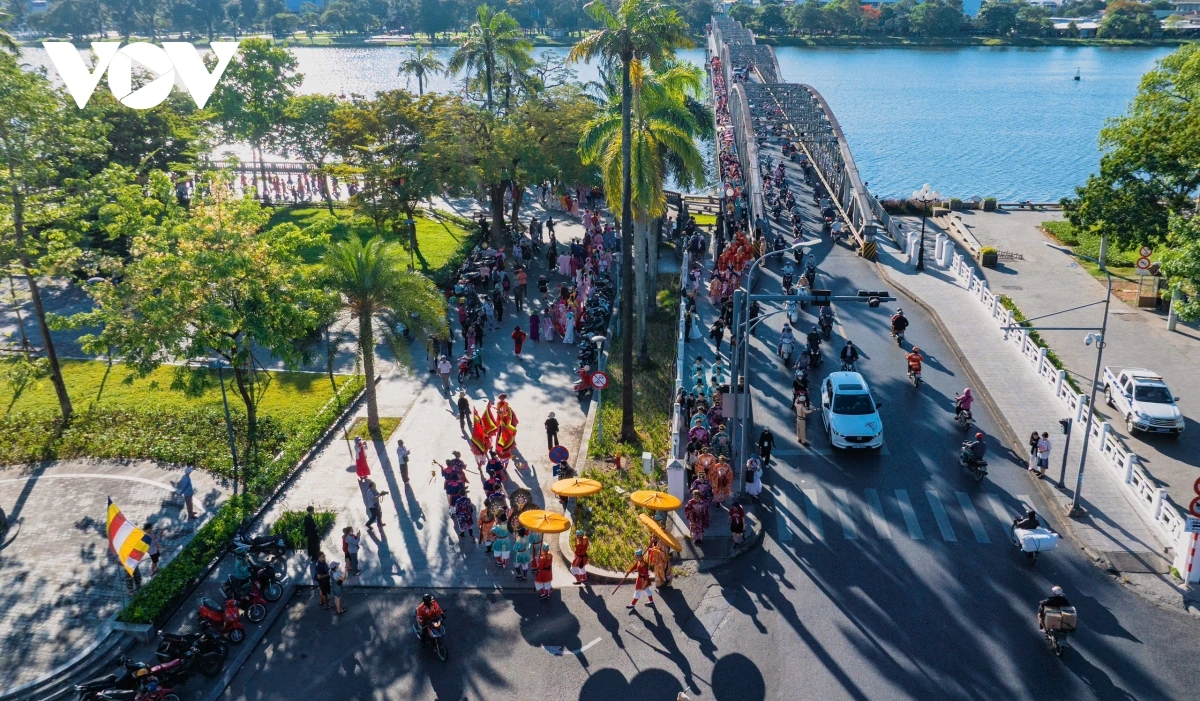 | Dọc theo tuyến đi bộ ở trung tâm thành phố Huế với chiều dài khoảng 3km, từ Nghênh Lương Đình, men theo bờ sông Hương, qua cầu Trường Tiền, dọc theo đường Nguyễn Đình Chiểu, qua cầu gỗ Lim đến quảng trường Quốc học Huế, người dân và du khách được chiêm ngưỡng đoàn diễu hành được tổ chức quy củ, công phu, mang đậm tinh thần "Việt phong hội tụ - tinh hoa của văn hóa trang phục truyền thống". |