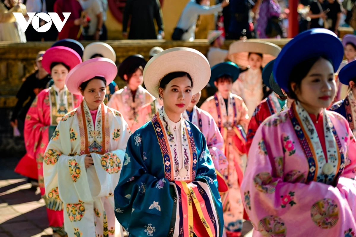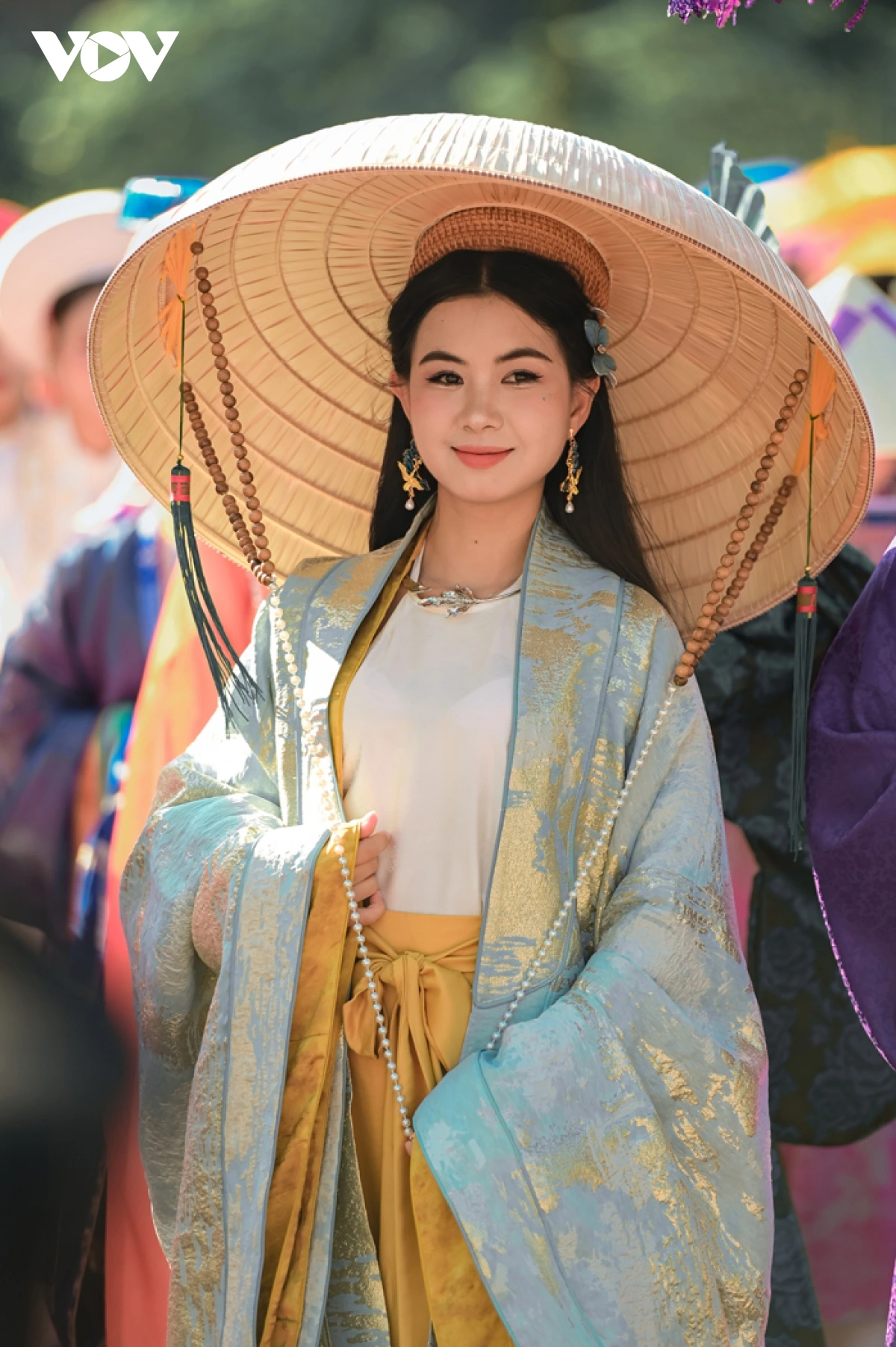 | Hai bên đường, đông đảo người dân và du khách đứng xem, cổ vũ và hò reo khi đoàn diễu hành cổ phục đi qua. Một số du khách nước ngoài cho biết "choáng ngợp" trước quy mô sự kiện và sự phong phú của các bộ cổ phục. |