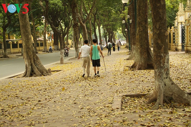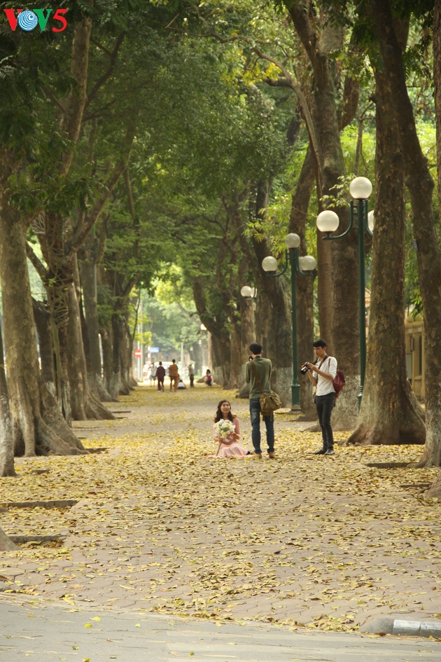 | Hà Nội lãng đãng và thơ mộng hơn bởi những thảm lá vàng rực. |