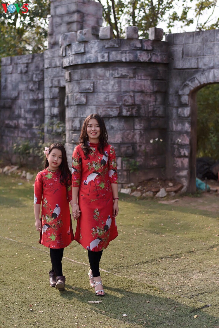 (VOV5) - Áo dài ngày càng được phái nữ chọn lựa để làm duyên trước ống kính, lưu lại những kỷ niệm đẹp khi Tết đến Xuân về. Những tà áo dài thướt tha, đủ màu sắc, từ truyền thống đến cách tân, càng làm tăng thêm vẻ duyên dáng cho phụ nữ Việt.