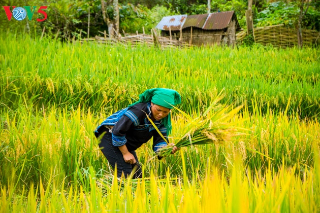 Phụ nữ Hà Nhì gặt lúa trên nương.