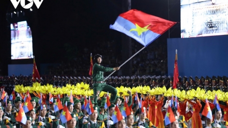 (VOV5) - Lễ Sơ duyệt cấp Nhà nước diễu binh, diễu hành có 38 khối của lực lượng vũ trang (quân đội, lực lượng dân quân 25 khối, lực lượng công an 13 khối), 12 khối diễu hành đại diện cho tổ chức quần chúng.