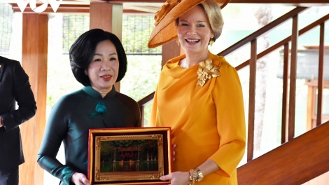 (VOV5) - Ngày 1/4, Phu nhân Chủ tịch nước Lương Cường - bà Nguyễn Thị Minh Nguyệt đã cùng Hoàng hậu Bỉ Mathilde tới thăm Khu Di tích Chủ tịch Hồ Chí Minh.