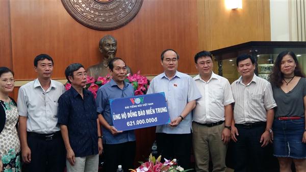 Chiều 24/10, Chủ tịch Ủy ban Trung ương Mặt trận Tổ quốc Việt Nam Nguyễn Thiện Nhân tiếp nhận tiền ủng hộ của một số Bộ, ngành và cá nhân gửi tới đồng bào miền Trung nhằm khắc phục hậu quả mưa lũ. Theo đó, Văn phòng Chính phủ ủng hộ 360 triệu đồng; Đài Tiếng nói Việt Nam ủng hộ 621 triệu đồng; Bộ Kế hoạch- Đầu tư ủng hộ 450 triệu đồng và Vinaconex ủng hộ 49 triệu đồng.