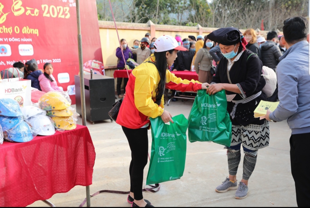 Nhà tài trợ tặng quà cho bà con tại Hội chợ 0 đồng. Ảnh do Ban tổ chức cung cấp |