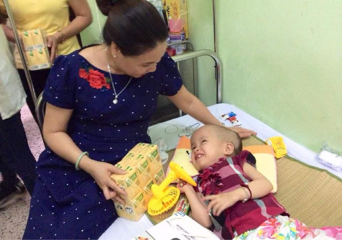 Bà Nguyễn Thanh Hương trao quà cho bệnh nhi.